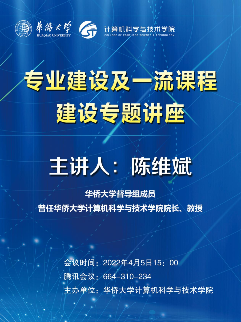 陈维斌教授为华侨大学教学督导组成员,曾任mg4377线路检测在线首页院长,长期参与我校各类教学相关材料的审查和指导,具有丰富的实战经验,同时也热心于推动我校以及计算机学院的教学工作发展。