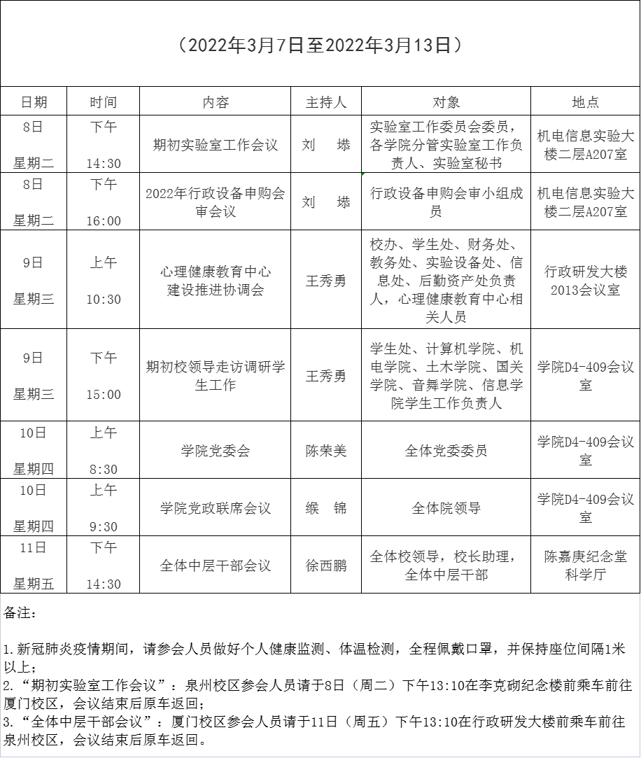 计算机学院2021-2022学年 第二学期第三周周会表